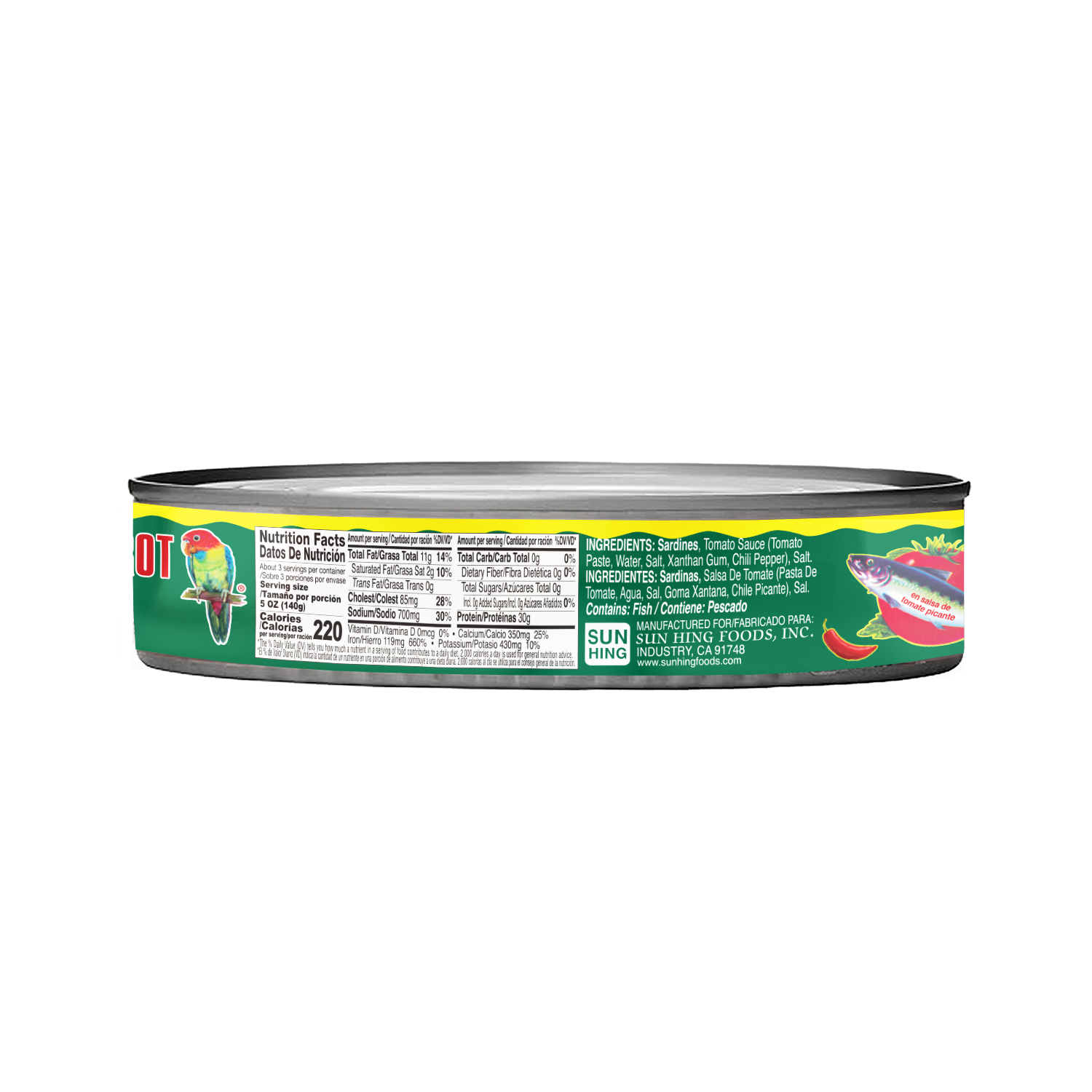 Spice up your meals with Parrot Sardines in Hot Tomato Sauce. These tender sardines are packed in a tangy, spicy tomato sauce, adding bold flavor and heat to every bite. Perfect for enjoying over rice, in sandwiches, or as a tasty addition to pasta and stews, they bring a zesty kick to your favorite dishes.