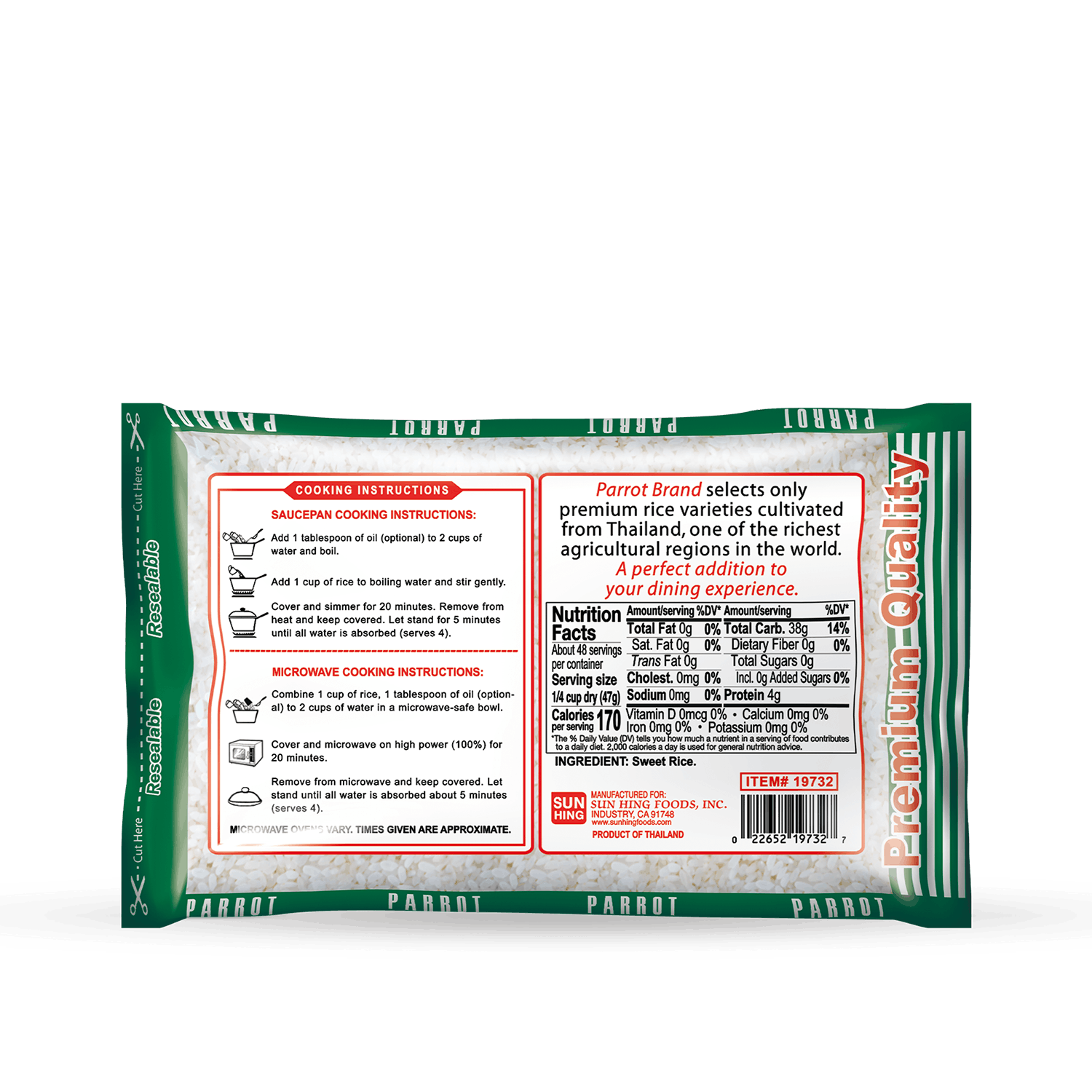 Parrot Brand selects only premium rice varieties cultivated from the deltas of Thailand, one of the richest agricultural regions in the world. A perfect addition to your dining experience.